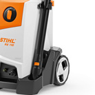 Díky robustní a vysoké teleskopické rukojeti, umístěné na zadní straně přístroje je možné tlakový čistič STIHL komfortně transportovat nebo uskladnit s úsporou místa.